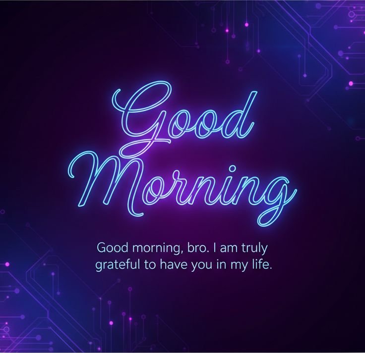 Good morning, bro. I am truly grateful to have you in my life. Wishing you a day filled with laughter and positive vibes.