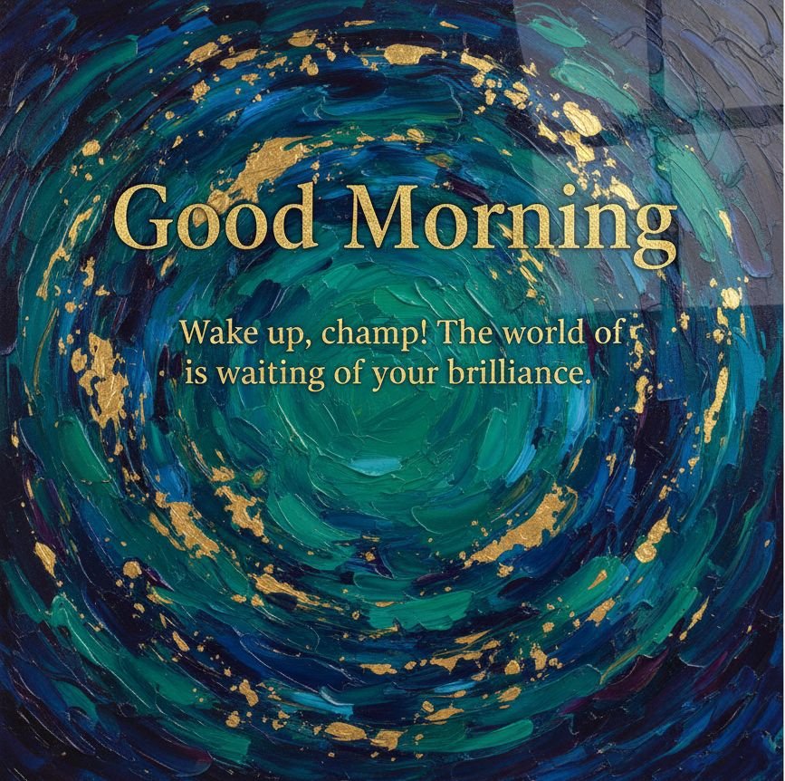 Wake up, champ! The world is waiting for your brilliance. May your morning be the start of something spectacular.