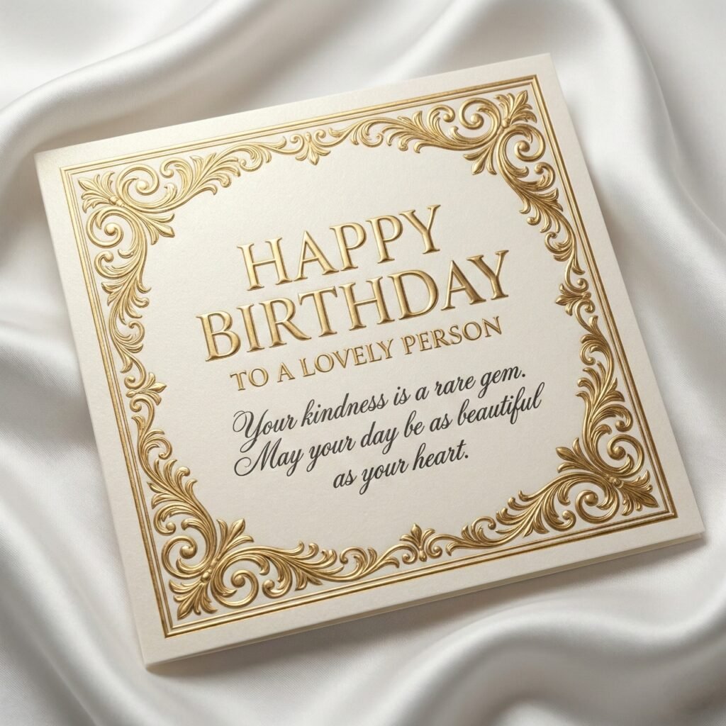 HAPPY BIRTHDAY TO A LOVELY PERSON. Your kindness is a rare gem. May your day be as beautiful as your heart.